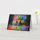 The front of this exciting, vibrant and eye-catching greeting card design features a colorful celebratory fireworks inspired pattern, along with the message "HAPPY 87TH BIRTHDAY!" featuring a multicolored rainbow like gradient pattern, on a black colored background. The inside features a customizable greeting message, or could perhaps be cleared and left blank if a message is to be written by hand instead. A greeting card like this might be a happy, fun way to celebrate somebody’s eighty seventh birthday. [~Z0000355]