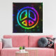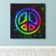 Stretched canvas peace sign art in rainbow colors.
