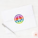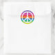A peace sticker showcasing a powerful symbol of harmony and positivity set against a vibrant rainbow backdrop.