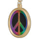 Rainbow Peace Sign Necklace. A colorful vintage peace sign with black and gold in a hippie boho style. A great gift for your favorite pacifist.