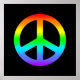 Rainbow peace sign poster - vivid peace sign on a black background.