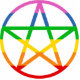 A rainbow striped pentacle.