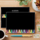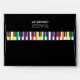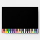 Send your greetings with this music themed envelope featuring a colorful twist of the ivory keys on both the front and back of this envelope! Shown here with the black color option which you can easily change to your favorite. Text templates for your name and address are on the back flap, be sure to change the text colors so it shows with your chosen envelope color.
