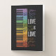 Abstract rainbow piano illustration with rainbow music notes and "Love is love" text design decoration