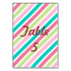 Looking for a decorative table card with a rustic feel? Well look no further. Displaying a rainbow pink striped design, with burgundy table numbers the design is the same on the front and back. Place your order today!