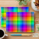 This rainbow plaid pattern is bright and colorful, with a light texture effect. It's a vivid, vibrant checkered pattern that looks pretty as is or as a background for your text and photos.