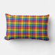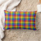 Throw pillow with a bright, colorful checkered plaid in colors of the rainbow. A Plaidwerx original pattern.