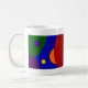 The moment I thought of making the center section of this abstract design blue, my geek mind saw the rainbow colored circles as an array of planets. A piece of a large red circle fills the left third of the frame. Peeking out from behind it is near half of a smaller orange circle. A small yellow dot resides near the top of the center blue background. A portion of a violet planet curves through the upper right of the image, overlapping a segment of a larger green circle in the lower right. A small indigo planet lies on the green like a small moon.