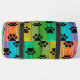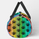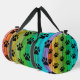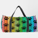 This playful Gear bag features an eye-catching design of black paw prints layered over a vibrant rainbow spectrum, resembling colorful wooden planks. It's a fun Kit bag and an ideal Weekender for animal lovers' adventures.