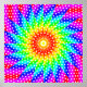 A brightly coloured digital kaleidoscope art design with white polka dot pattern. Colours include red, yellow and orange in a sun-like motif at the centre, with green, turquoise, blue and purple radiating outwards (though the outer colours may not be visible on certain products). A symmetrical abstract digital artwork with complex psychedelic structure and hypnotic spotty pattern.
