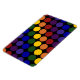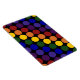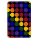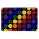 Rows of rainbow colored polka dots cover a black background. The offset rows form diagonals of each color: violet, indigo, blue, green, yellow, orange, and red.