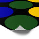 Rows of rainbow colored polka dots cover a black background. The offset rows form diagonals of each color: violet, indigo, blue, green, yellow, orange, and red.