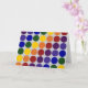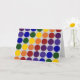 This custom item features rows of rainbow colored polka dots on a grey background. The grey has an almost metallic feel to it. The offset rows form diagonals of each color: violet, indigo, blue, green, yellow, orange, and red.