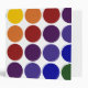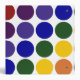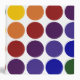 Rainbow colored polka dots are arranged in rows on a white background. The offset rows form diagonals of each color: violet, indigo, blue, green, yellow, orange, and red.