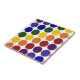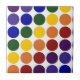 Rainbow colored polka dots are arranged in rows on a white background. The offset rows form diagonals of each color: violet, indigo, blue, green, yellow, orange, and red.