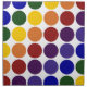 Rainbow colored polka dots are arranged in rows on a white background. The offset rows form diagonals of each color: violet, indigo, blue, green, yellow, orange, and red.