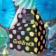 Rainbow polka dots. Seamless pattern. Custom background color. Custom text on both sides.