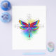 Bright, rainbow, polygonal dragonfly on white background, painted with watercolor.