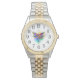 The watch is very nice, the picture is great and the watch looks like quality. The only problem I am having with it is that it is a little too large, and I also can't figure out how to open the clasp. No directions came with it. Very good. The printing is perfect and the watch keeps good time.