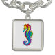 Artistically drawn, bright, rainbow, polygonal seahorse on white background. Bright tattoo.