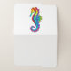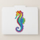 Artistically drawn, bright, rainbow, polygonal seahorse on white background. Bright tattoo.