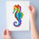 Artistically drawn, bright, rainbow, polygonal seahorse on white background. Bright tattoo.