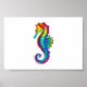 Artistically drawn, bright, rainbow, polygonal seahorse on white background. Bright tattoo.