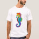 Artistically drawn, bright, rainbow, polygonal seahorse on white background. Bright tattoo.