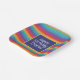 Colorful paper party plate features rainbow pop it pattern that looks like popular fidget / sensory toys and accessories. Customize with name or message in center text square.