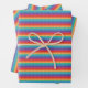 Colorful wrapping paper sheet trio features rainbow pop it pattern that looks like popular fidget / sensory toys and accessories. Horizontal, vertical and diagonal pop it patterned sheets included.