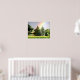 A fantastic print of a beautiful rainbow across a field going behind evergreens. Where obviously the 'pot of gold' resides :)