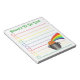 List-style to do list note pad design features an original marker illustration of a rainbow with a pot of gold, with TO DO LIST in a green font. Just personalize with your information.