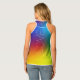 Here is a one-of-a-kind rainbow design for your women's all-over print tank top. On the front, we added "PRIDE" vertically twice (downwards and upwards) to make a very original and trendy tank top for you. The text is written in a very stylish white and midnight blue dotted font. Of course, this design is LGBTQ+ Friendly. We made it specifically for the word "PRIDE". You may perfectly replace it with the word of your choice, but it may not fit if you choose a word that takes more space. So, here is what you have to do: choose "Personalize this template" and then "Click to customize further" to edit the design. Then, select one of the fields where "PRIDE" is written. Click "Edit text" and write the text that you wish. If the text overflows the content area, then select both text fields and decrease the font size until the text perfectly fits the design. We also added a customizable text on the lower back, set vertically in the same font in white. The default text on the back is "LOVE". You can keep it as is, modify it, or delete it. If you want to replace it with a text too long for the space, follow the instructions above concerning the front text. In case you would like to modify the text on the front, here is a suggestion of short words that fit the content area perfectly and that you can use without editing the design: LOVE, SMILE, GOOD, KING, LGBT, GAY, CUTE, FREE, FUN, MAN, BOYS, GIRLS, GIRLY, DAD, MOM… On the upper back, you will find customizable initials in the same typeface.