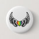 A cartoon heart with wings to fly in shadowed black, with a grungy crayon style colored rainbow stripes design filling the heart. Choose from our patterned designs or upload your own background image and adjust size as necessary to fill the heart.