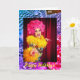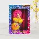 A Rainbow Pride Happy Holidays card for the Gay or Straight community who find enjoyment in living. A hilariously delightful Drag Queen with a bright pink rolled foam wig and brilliant yellow caribou feathers is featured on the front with the greeting "Happy Holidays." Sort of a take of a famous comedienne we all loved so much.
