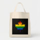 Tote Bag with maple leaf from flag of Canada in the colors of LGBT (lesbian, gay, bisexual, and transgender people) rainbow stripes flag, Canadian gay pride lgbtqiap+ design,