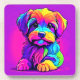 Rainbow Puppy Artwork Beverage Coaster