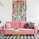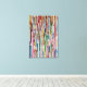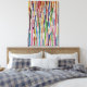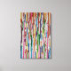 "Rainbow Rain Paint Drip" is a stunning multicolored drip artwork created by our exclusive artist, depicting rain as vibrant stripes cascading down a windowpane. It is an abstract painting featuring colorful streaks of paint dripped vertically across a white canvas.