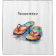 Transform your bathroom into a vibrant coastal retreat with this customizable shower curtain, featuring the delightful "Rainbow Reef Flip Flops" watercolor design. Colorful sandals in fluid watercolor bring a playful, artistic touch.