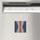 Abstract retro style reflected rainbow illustration with blue, beige, navy blue, brown, red and rust color striped decoration