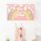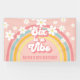 Six is a Vibe! Retro inspired 6th birthday banner with 70's style fonts and colors, rainbow, and daisies in pink