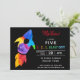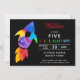 Rainbow Rocket Ship Outer Space Birthday Party Invitation