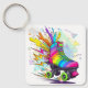 This is a bright retro roller-skates illustration styled with rainbow motion lines and vibrant splashes to express 80s and 90s pop culture energy in a clean graphic layout.