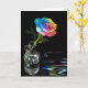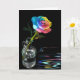 Colorful rainbow rose in vintage bottle with colorful water reflection on black.