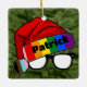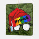 Rainbow Santa Hat with Glasses Ceramic Ornament