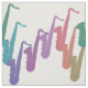 Rainbow Saxophones on White Fabric. Rainbow Saxophones dancing in a zig zag pattern against white or your choice of background color.. Great for designing for the musician or music lover. The background color can be changed to match your decor or music themed event.