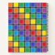 Abstract digital art of rainbow colored squares against a black background with what seems like white scratches inside each square.