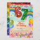 Rainbow Sequin Glitter 67 St Patrick Birthday Invitation, I Was 6 Now I'm 7 Girl Birthday Invite, Colorful Kids 7th Birthday