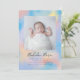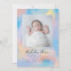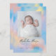 Happy sweet rainbow sky creates the backdrop for this cute birth announcement.