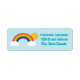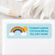 This cheerful return address label features a bright rainbow with clouds on a soft light blue background. A fun, colorful choice for baby announcements, birthday party mailings, and family correspondence. All text is fully customizable.
